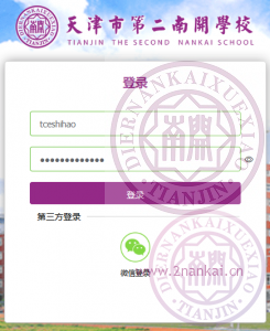 - 第一步:进入 天津市第二南开学校公共支撑平台,使用您的用户名和初始密码进行登录